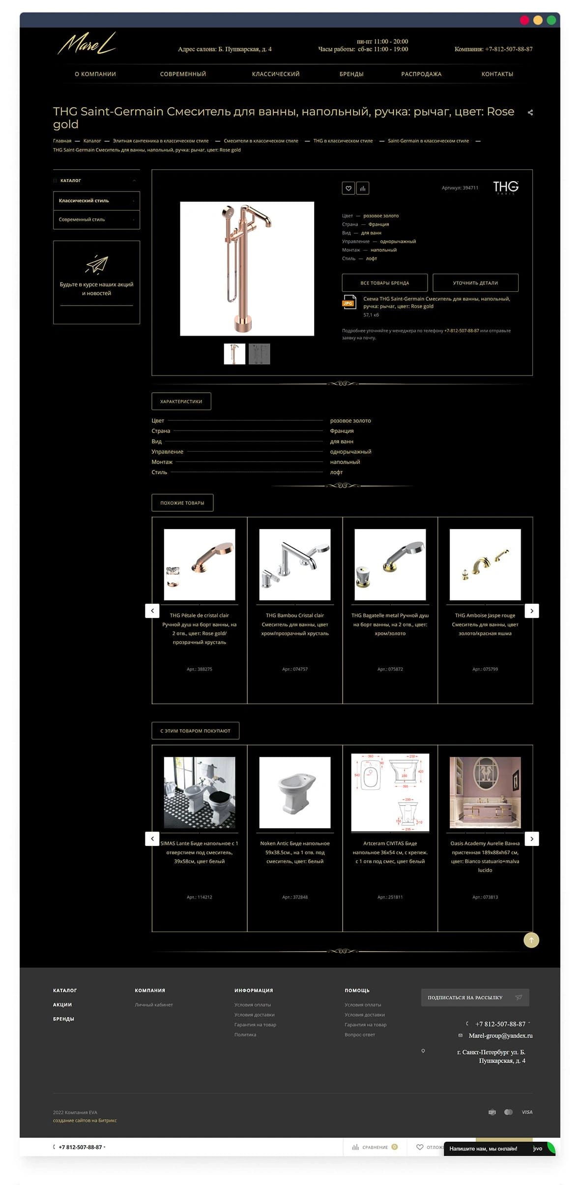 Клиент обратился в нашу компанию, чтобы создать сайт, так как компания Marel уже имела популярный шоу-рум в самом центре Санкт-Петербурга, но не имела представительства компании в интернете. Клиент был против шаблонного интернет-магазина. Хотел индивидуальный дизайн с минимальными вложениями. Нашим специалистам нужно было создать сайт, разработать уникальный дизайн и проработать его оформление. Наполнить каталог товарами и услугами, подготовить онлайн-магазин к сео продвижению.