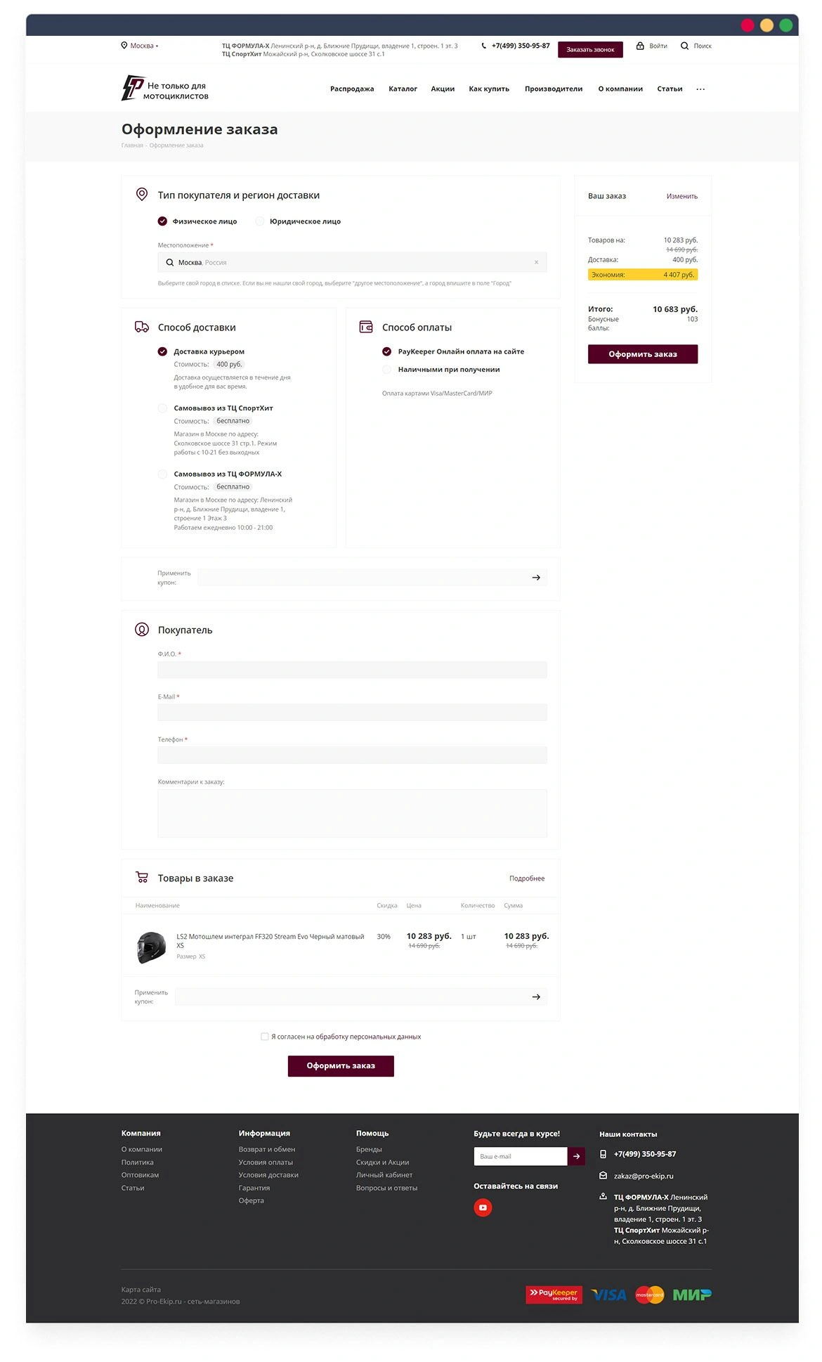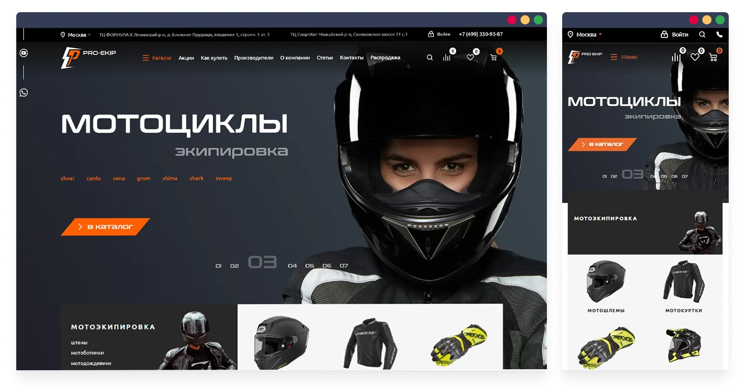 Сайт интернет-магазина мотоэкипировки