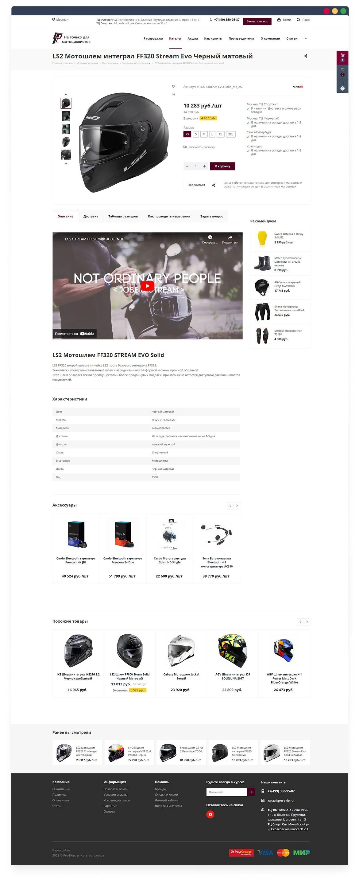 Pro-Ekip.ru — интернет-магазин фирменной экипировки для мотоциклов. В каталоге товаров представлены мотошлемы, перчатки, комбинезоны, наколенники, рюкзаки, аксессуары и многое другое. Магазин ориентирован на мотоциклистов, мотоспортсменов и мотошколы. В продаже представлена продукция как отечественных, так и зарубежных брендов.