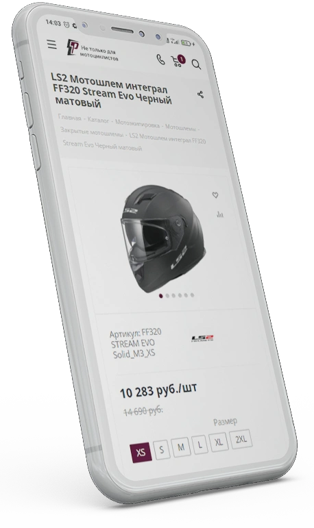 Основная задача – создать мультирегиональный сайт, так как продажа мотоэкипировки будет осуществляться в более чем 20 регионах. Разработать стильный, удобный и функциональный сайт, который будет выделяться среди конкурентов, а также наполнить товарами с других сайтов. Мы провели аудит, сравнили лидеров в конкурентной среде, выявили слабые стороны, разработали проект и приступили к его реализации.